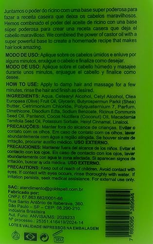 Gold Spell CO – Caseirinho Capilar Rícino (Moisturizing Hair Treatment) 250ml / 8.45 fl. oz – Nourishing & Strengthening Hair Mask with Castor Oil for Dry or Damaged Hair - Imported From Brazil