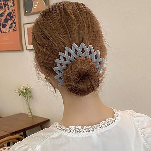 Hair Bun Holder - Hair Clips for Women | Ponytail Clip Bun | Korean Lazy Roller Ball Head, Adjustable Jaw Grip Accessories for Ladies, Travel, Beauty, Outdoor, Curly Styling, Home Updo(Gray)