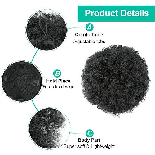 【Afro Ponytail Hair Extension Material】Premium quality Afro puff drawstring ponytail are made of high temperature fiber. Premium synthetic hair super soft, full, smoothier, comfortable, this ponytail not only can be used and keep the curve for a long time, but also looks more natural.