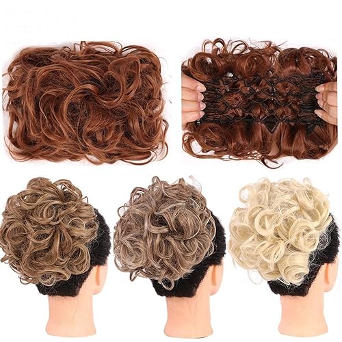 Hair Bun Synthetic Comb Clip - In Curly Hair Bun Extension for Women - Ideal Chignon Updo Cover Hairpiece Curly Hair Ponytail Clip In(Dark brown)(Dark brown)