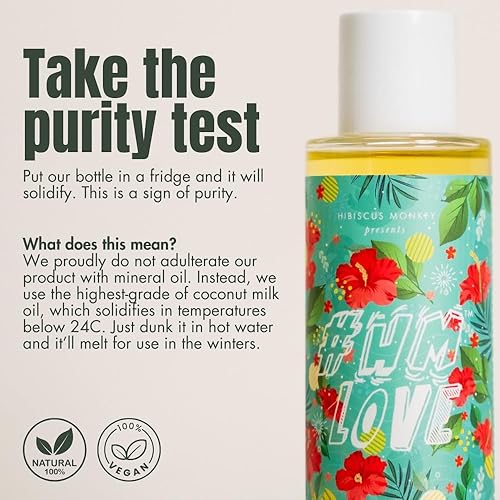 Hibiscus Monkey HM Love Scalp & Hair Oil | Promotes Hair Growth, Reduces Hair Fall | Scalp care | Anti Frizz | Real Hibiscus Flowers, Coconut Milk Oil | Natural | No Mineral Oil, Chemical-Free | 100mL