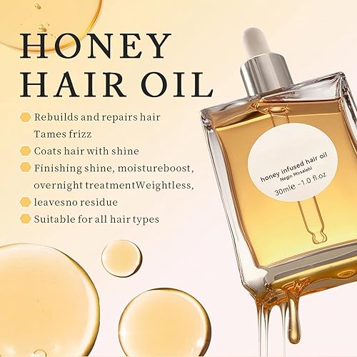 【Ultimate Hair Repair】Our honey-infused hair oil deeply nourishes dry, damaged hair while providing intense repair and shine enhancement. Perfect for reviving dull strands and restoring healthy-looking hair with natural luminosity