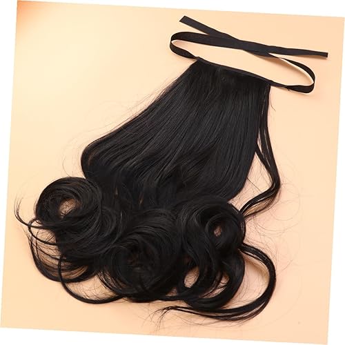LIFKOME Long Curly Synthetic Ponytail Hair Extension with Ribbon Drawstring Natural Black Wavy Hairpiece for Women Comfortable Ventilative Design for Daily Wear and Special Occasions