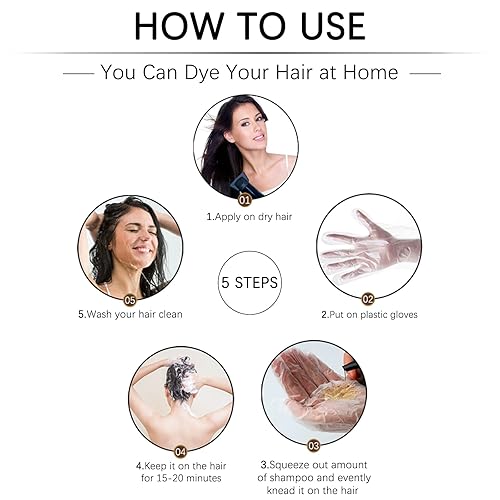 【Easy to Use】 No need to mix in advance and hassle-free to dye hair at home, super easy and quick to apply. Wear the gloves in the package,and apply it as normal shampoo on DRY hair,rub it evenly for 5-10 minutes,and hold it on for 15-20 minutes,then rinse.You can have natural light brown hair immediately.