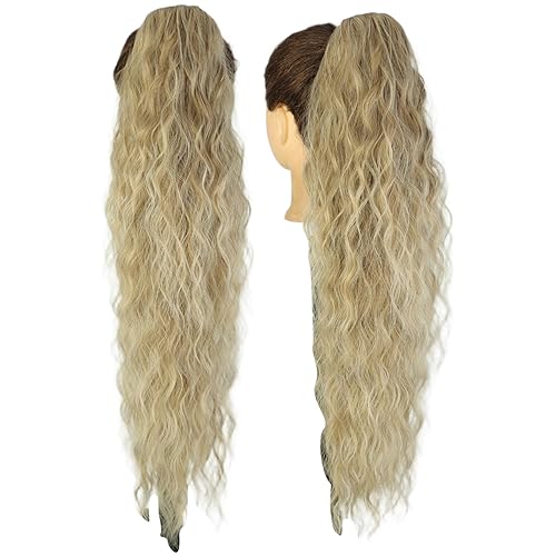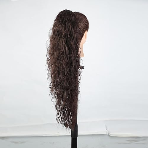 Long Corn Shaped Synthetic Hair Clip with Water Wave Curly Ponytail Wig Extension Hairstyle Accessory for Women and Teens Red One Size(White,One Size)