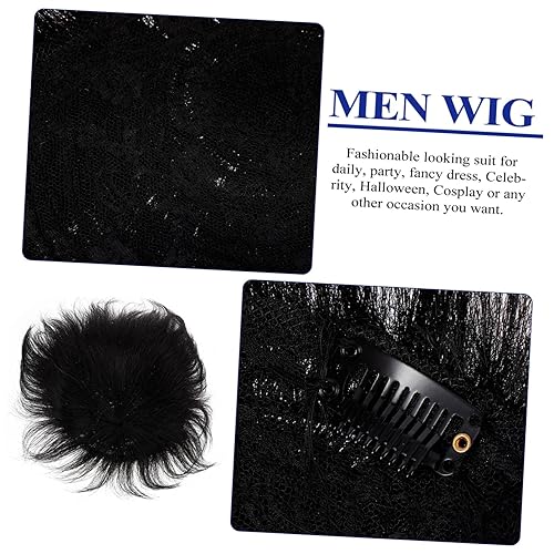 Male Hairpiece Bald Covering Wig Piece Natural Black Human Hair Extension for Men Realistic Topper Replacement Breathable Comfortable Design