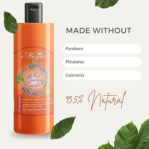 Merja Natural Shampoo for Dry and Dyed Hair, Mint Rosemary Lavender Essential Oils, 16.9 Fl Oz (Pack of 1)