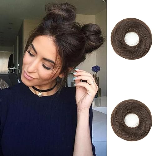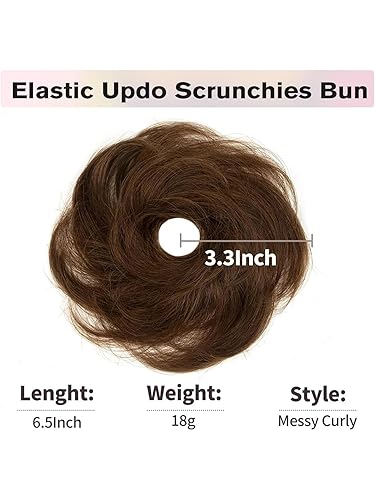 Messy Bun Hair Piece for Women Human Hair Scrunchies Ponytail Extension with Elastic Rubber Band Hair Pieces for Updos Fake Hair Buns Hair Piece Accessories Set for Women(Light Brown #4,1 pcs)
