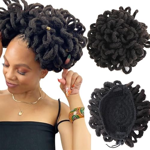 Comment on "Messy Hair Bun Dreadlocks Bun Afro Puff Drawstring Ponytail Hair Chignon Faux Nu Locs Hair Extensions Ponytail Hairpiece for Daily Wear(1B-30)(4-27-30)"