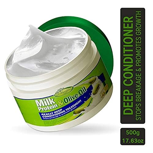 PROTECTS HAIR - GroHealthy Milk Protein & Olive Oil Really Deep Conditioning Treatment is an anti-breakage formula hair mask that nourishes and protects the hair making it healthier.