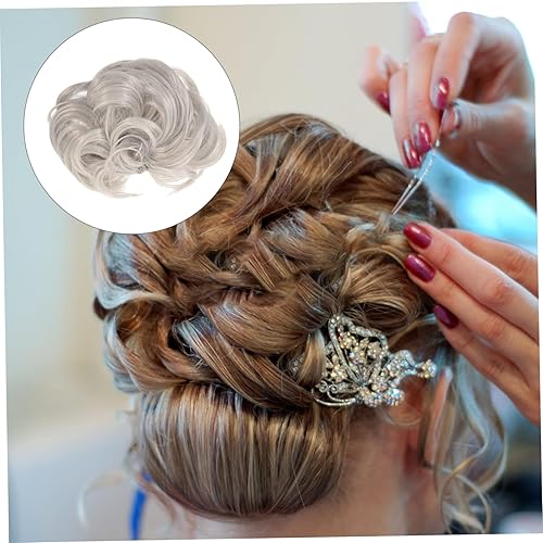 minkissy Ladies Fashion Grey Ponytail Hair Extension Bun Scrunchie Elastic Wave Curly Synthetic Hairpieces for Women for Parties and Gatherings Easy to Wear and Clean Durable