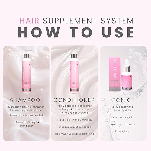 Strengthens Hair & Reduces Breakage – MinoxiPink Shampoo and Conditioner are infused with Procapil, Biotin, and Stem Cells to fortify hair follicles, reinforce strand structure, and prevent excessive shedding, promoting stronger, healthier hair from root to tip.