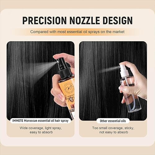 LEAVE-IN CONDITIONER SPRAY: This hair oil spray, rich in argan oil and unsaturated fatty acids, deeply penetrates hair to repair damaged cuticles. Combined with coconut oil, it nourishes dry, frizzy hair, restoring smoothness and shine from within for a naturally healthy, radiant texture.