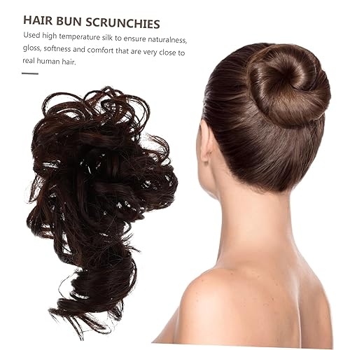 Natural Volume Messy Ponytail Hairpiece with Elastic Band Dark Brown Hair Bun Extension for Womens Updo Curly Tousled Chignon Hair Accessory for Parties and Daily Use
