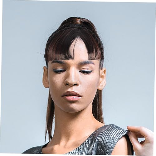 NOLITOY Synthetic Wigs with Adjustable Headband Bangs Fringe Hair Extensions for Women Natural Dark Brown Front Hair Bangs Suitable for All Face Shapes Comfortable Daily Wear