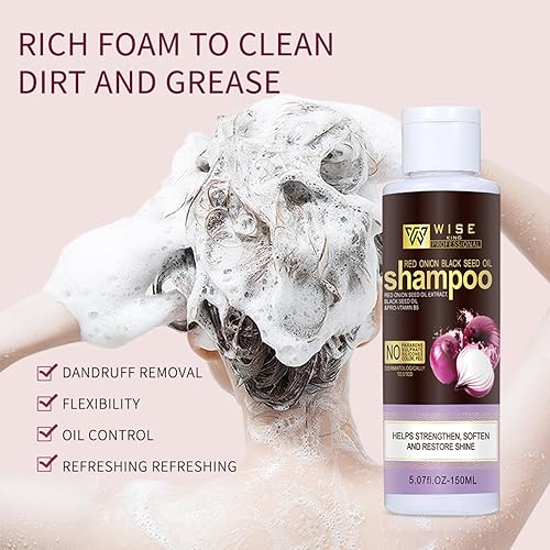 Onion Shampoo, Biotin Shampoo,Red Onion Black Seed Oil for Prevents Hair Loss, Stronger, Denser, Smoother & Shiny Hair, 5.07fl.oz