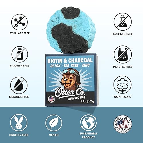 Otter co. Biotin Detox Shampoo Bar – Charcoal & Tea Tree Oil, Rosemary, Turmeric, Green Tea, Zinc – Vegan, Sulfate Free & Non Toxic – Women and Mens Shampoo, All Hair Types, Made in USA