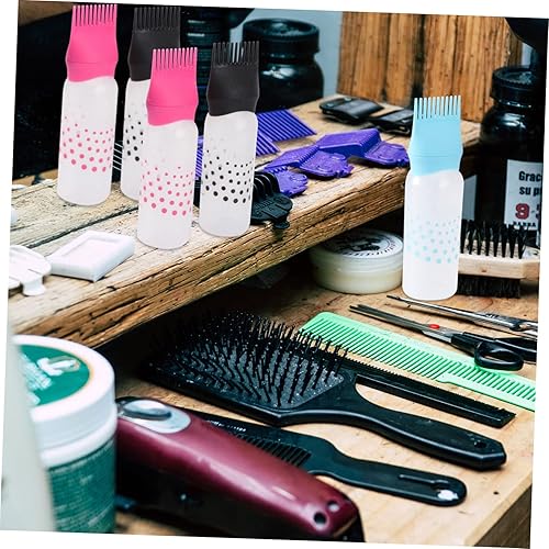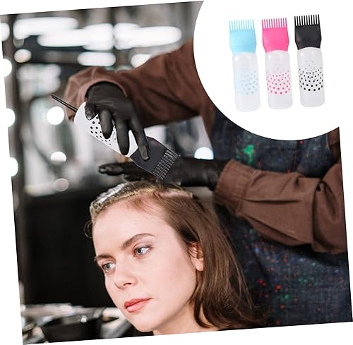 OUNONA 3Pcs Colorful Hair Dye Bottles with Comb Applicator Smooth Surface Hairdressing Tools for Even Color Distribution Salon Black Rosy and Blue