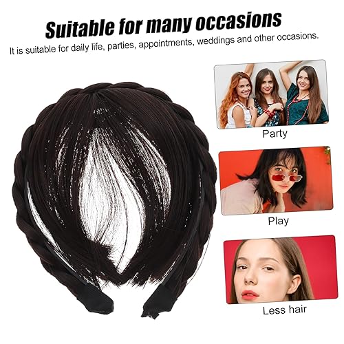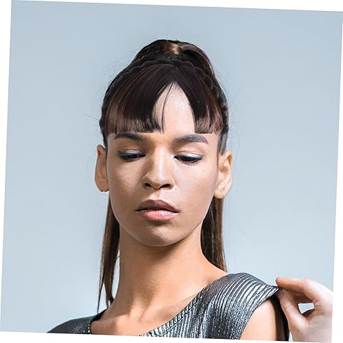 OUNONA Synthetic Wigs Headband Bangs Forehead Hair Extensions for Women and Girls Dark Brown Fringe Hairpiece for Everyday Use