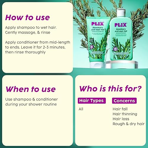 PLIX - THE PLANT FIX Rosemary Anti Hairfall Regime| Advanced Shampoo & Conditioner | Reduces Hair Fall & Strengthens Hair | Rosemary Extract, Ceramides & Plant Keratin | For Men & Women