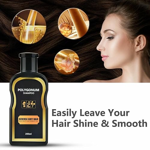Polygonum Grey Reverse Hair Color Shampoo – 200ml Natural Black Hair Pigment Restoration Formula, Covers Grey, Nourishes & Strengthens, Easy to Use, USA Stock, Unisex Hair Care Solution