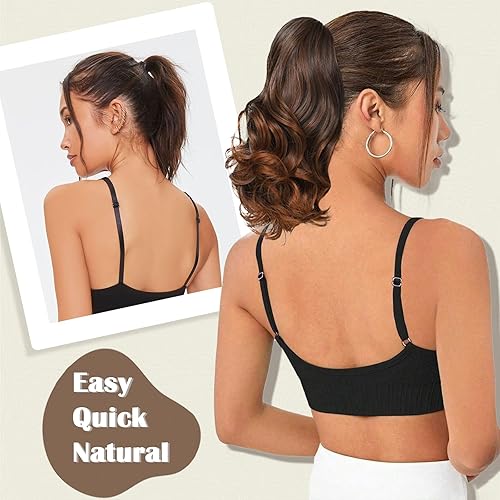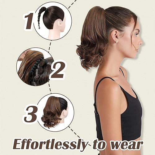 Ponytail Extension 8 Inch Claw Clip in Ponytail Short Curly Ponytail Extension for Women Fluffy Wavy Curly Synthetic Versatile Ombre Brown Hairpieces(Natural Black#)