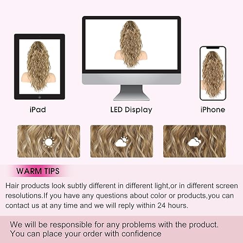 Comment on "RONTAYA Ponytail Extension, 30Inch Claw Clip Ponytail Extensions for Women Multi Layered Fluffy Thick Wavy Jaw Clip in Fake Pony Tails Fake Hair Soft Synthetic Hairpiece Ombre Black to Pink(Medium Brown Ash Blonde Highlights,18 Inch)"