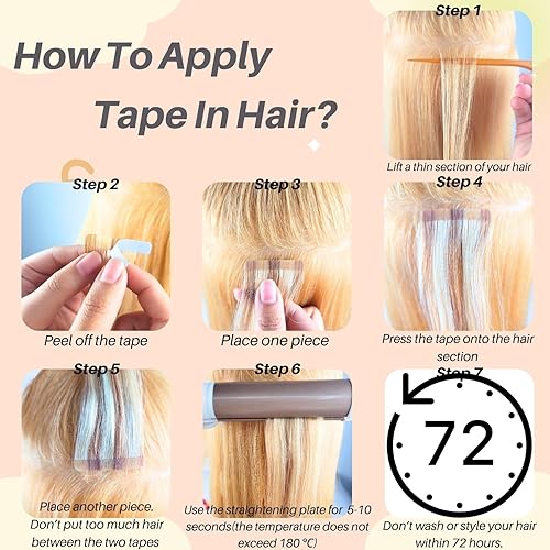 Premium Quality:100% Remy Human Hair Extensions Tape In, Never Dries Out or Loses Its Shine Over Time, Can Be Curled, Straightened Dyed & Washed Like Your Own Hair. Last for 3 Months With Proper Care