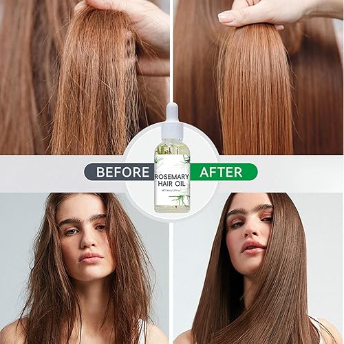 REDUCES BREAKAGE AND SPLIT ENDS: Our rosemary hair oil repairs hair damaged by perming and dyeing. It penetrates the hair shaft, enhancing its elasticity and strength, thereby reducing breakage and split ends. Long-term use can help even brittle or fragile hair become stronger, smoother, and more lustrous.