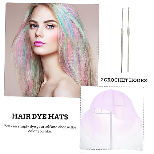 SAFIGLE 1set Silicone Hair Highlighting Cap Crochet Hooks Reusable Hair Dyeing Tool for Home and Salon Use Prevents Skin Stains Easy to Use for Professional Coloring(Pink)