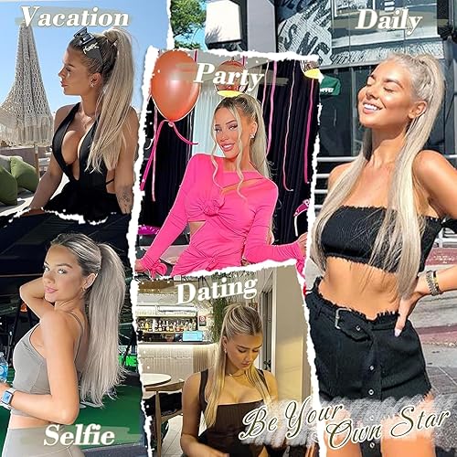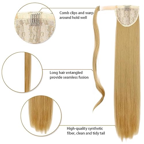 Straight Clip In Hair Extensions Ponytail Hairpiece with Hairpins Thick Magic Paste Natural Long Fluffy Soft Wrap Around Yaki Synthetic Pony Tail Hair for Black Women Off White 22”(Off White,22 Inch)