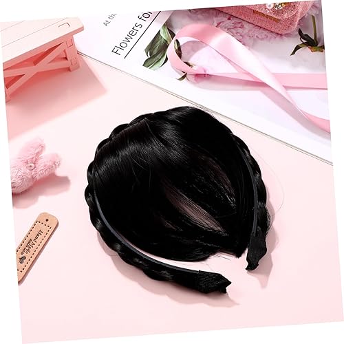 Synthetic Headband Bangs Wig for Women Natural Black Front Fringe Hair Extensions Adjustable Comfortable Fit Ventilative Lightweight Suitable for Daily Party Cosplay and Halloween