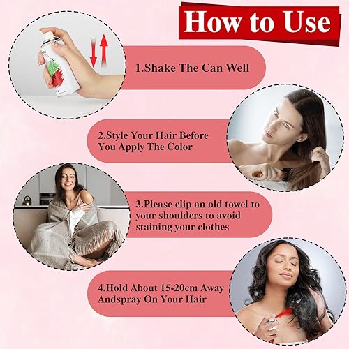 QUICK-DRY FORMULA: Spray temporary hair dye 6 inches away from your hair,wait 1-3 minutes to dry naturally for a sophisticated hairstyle. Compact size for easy portability.