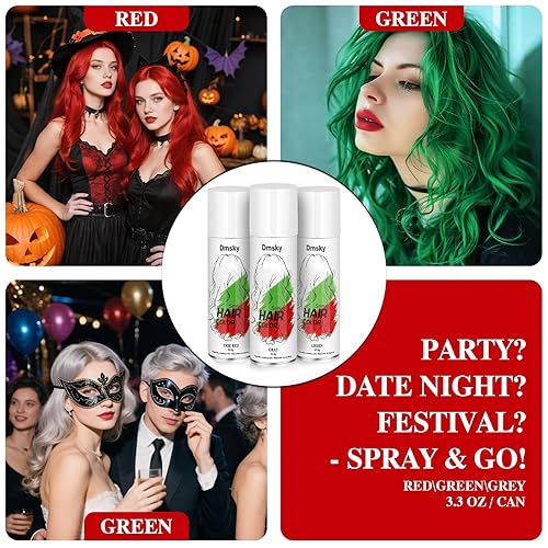 TEMPORARY HAIR COLOR SPRAY: This hair color spray is quick and easy to apply, gentle on hair. Get bold salon level color tones in 3 minutes! Our damage free spray formula provides a rich palette of red, green and smooth grey tones to create an amazing and eye-catching hairstyle. Wash out after one day of wear.
