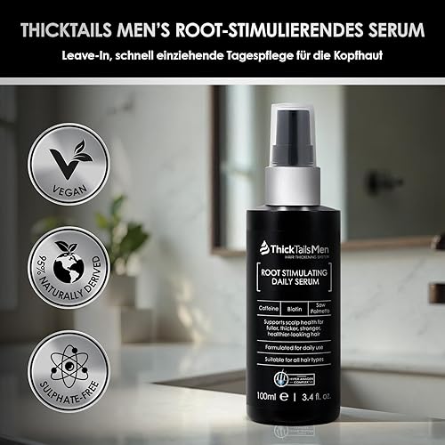 ThickTails Men’s Root Stimulating Leave-In Serum for Thicker, Fuller-Looking Hair – Daily Vegan Hair Strengthener with Biotin, Caffeine & Saw Palmetto – Lightweight, Fast-Absorbing Formula