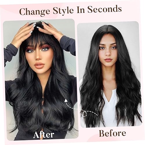 VALICLUD Heat Resistant Clip in Hair Bangs Extension Matte Black Fake Hairpiece for Women Restylable Synthetic Fringe with Realistic Texture