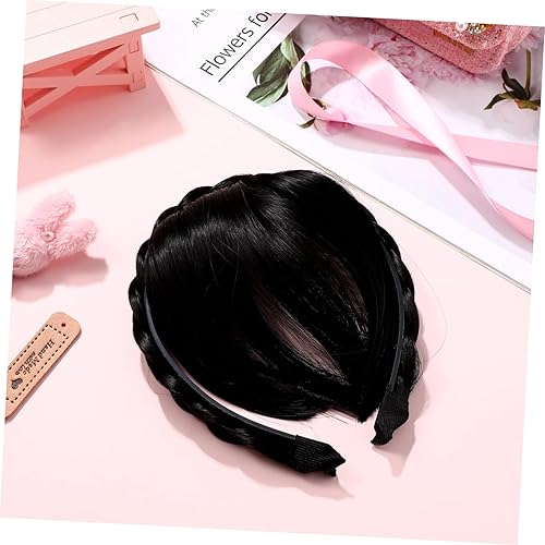 Wakauto Adjustable Headband Synthetic Wigs with Front Hair Bangs Fringe Natural Black Air Bangs for Women and Comfortable Ventilative Hair Extensions for Daily and Party Wear