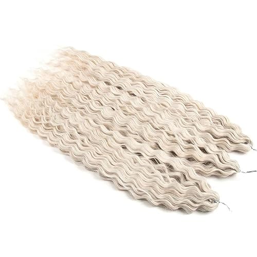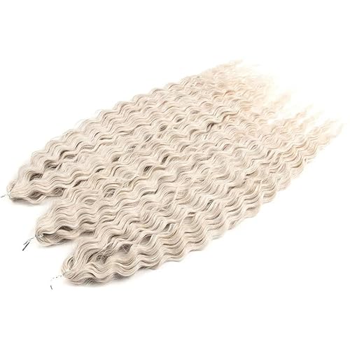 Women Synthetic 22 Inch 300G 3 Bundles Wave Hair Extensions Ombre Blonde Braid Curly Hairs(T-LINEN(68),22 Inch-55CM)